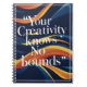 Unleash your imagination with the "Your Creativity Knows No Bounds" spiral notebook, a perfect companion for artists, writers, and dreamers alike. This beautifully designed notebook features a vibrant cover that inspires creativity at every turn, adorned with whimsical illustrations that spark joy and motivation. Inside, you'll find high-quality, thick pages that are ideal for sketching, journalling, or note-taking, ensuring that your thoughts and ideas flow seamlessly onto the paper. The convenient spiral binding allows for easy flipping and lays flat, making it simple to write or draw from any angle. Whether you're brainstorming your next big project, doodling during a meeting, or capturing fleeting thoughts, this notebook is a canvas for your creativity, inviting you to explore and express yourself without limits. Perfect for personal use or as a thoughtful gift for someone who loves to create, this notebook is a must-have for anyone looking to turn their ideas into reality.