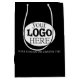 This custom gift bag features a sample company or business logo placed in the centre over a black background. A sample slogan or additional text is printed below. You can personalise the gift bag to include your own custom logo or image and text of your choice.