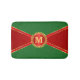 A custom holiday design in red and green with gold embellishment. Insert your monogram in place of the sample monogram shown.