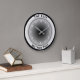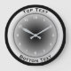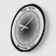 Your Custom Text Black White and Silver Grey Monochrome Clock. Personalise your clock by adding your own custom text. There is an input box for curved text on the top and an input box for curved text on the bottom. The text can be changed or deleted.