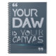 Unleash your creativity with the "Your DAW Is Your Canvas" notebook, specially designed for music producers who understand that every great track begins with a spark of inspiration. This beautifully crafted notebook features a sleek cover adorned with the inspiring phrase, reminding you that your digital audio workstation is not just a tool, but a blank canvas waiting for your unique musical vision. Inside, you'll find high-quality, lined pages perfect for jotting down song ideas, lyrics, and production notes, ensuring that no moment of inspiration goes unrecorded. Whether you're in the studio or on the go, this notebook is the ideal companion for capturing your thoughts and transforming them into the next big hit. Embrace your artistic journey and let your imagination flow freely as you fill each page with your musical dreams!
