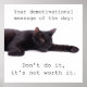 Your demotivational message of the day: Don't do it, it's not worth it. Text with a black cat sleeping on white background. Deliriously funny. Seriously.