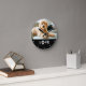 This simple and adorable clock features your favourite photo of your pet dog or cat, with the word "love" using a paw print in white modern text on a black background.