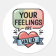 A minimalist pastel speech bubble carrying the powerful message: “Your feelings are valid.” 💬✨
