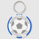 Your Football Club Name on a Keyring. Blue and white stripes colour theme.