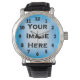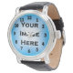 This custom watch template is a simple, versatile, and classic timepiece design with large black numbers that indicate the hour.