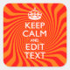 Your Keep Calm Saying on Vibrant Orange Swirl Square Sticker