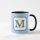 Your Letter. Custom Monogram. Blue Black White. Mug