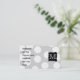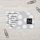 This design has a black splat shape and white monogram letter, on a pattern of white spots on light grey. The initial letter can be personalised. A fun monochrome design.