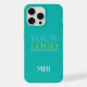 Your Logo/Art/Photo, White Monogram, Teal iPhone Case