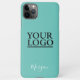 Your Logo/Art/Photo, White Script Name, Light Teal iPhone Case