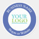 Personalise this sticker with your Company Logo, Business Name, slogan, website or any text you want. White text on blue circle. Click “Customise” to easily change colours and type styles.