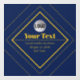 basic plain but stylish appearancemodern simplistic minimalistic fontcool simple self promotional designadd slogan or social mediavintage retro looking business namesimple yet creative bold lookingfancy art deco style squaresupload my own logo heredark navy blue and goldgeometric square framed shapes