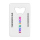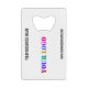 Custom Fonts and Colours - Design Your Own Personalised Credit Card Bottle Opener with Company Logo and Name Website or Custom Text Promotional Business Bottle Openers / Supplies Gift - Add Your Logo - Image - Photo / Name - Company / Website or E-mail or Phone - Contact Information / Address / More - Resize and Move or Remove / Add Elements - Image / Text with Customisation Tool. Choose / Add Your Favourite Background and Text Colours / Fonts / Size ! ( Select your logo colour with filter for colours ) Please see my others projects / designs. You can also transfer this designs to more than 1000 Zazzle products. Please use your logo - image that does not infringe anyone's Copyright !! Good Luck - Be Happy :) by MIGNED