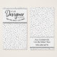 These cards were made to complement the glamourous, unique style of your artisan earring designs. The design features template space holders where you can add your own logo or graphic to the front, and contact details to the back. The background was covered in a festive, glam graphic depicting silver confetti.