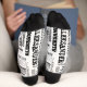 Create a very extremely personalised pair of socks. Your custom name appears all over these socks in a collage of different fonts and lettering styles. Black lettering is set against a white background.