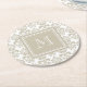 Your Monogram, Beige Damask Pattern 2 Round Paper Coaster