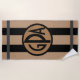 Three letter monogram set on a tan circle, with black circular border, over Wide Cabana Stripes beach or club towel.
