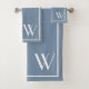 Add your /his monogram to this simple towel set in faded denim colour (778fa8) . It is a grayish blue colour . From the store of lumirala . Personalised gifts are always a good idea !