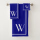 Add your /his monogram to this simple yet elegant towel set in (#000080) navy blue&white . From the store of lumirala . Personalised gifts are always a good idea !
