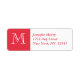 Your Monogram, Red and White Return Address Label. Customise with your address information. Perfect for wedding invitations.