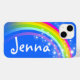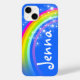 Pretty rainbow design iphone case in blue and colourful colours. Personalise with your own choice of name up to 5 letters. This example reads Jenna. (***Please note some names will not always fit due to the nature of the font.