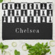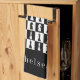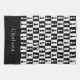 Kitchen towel featuring a black and white chess game figures chequered pattern and personalised name print.