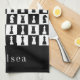 Your Name Chess Game Figures Pattern Black & White Tea Towel