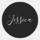 Your Name | Elegant White Script on Black Classic Round Sticker
