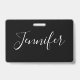 Your Name | Elegant White Script on Black ID Badge