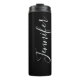 Your Name | Elegant White Script on Black Thermal Tumbler