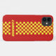 Chequered stripe iPhone case with colours that are fully customisable. Click customise to change the background colours. To change the chequered stripe colours, click customise, select Checkered1.2 layer and change the fill colour. It's the perfect phone case for a car enthusiast.