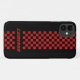 Chequered stripe iPhone case with colours that are fully customisable. Click customise to change the background colours. To change the chequered stripe colours, click customise, select Checkered1.2 layer and change the fill colour. It's the perfect phone case for a car enthusiast.