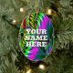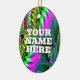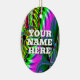 Brightly coloured abstract computer art painted on both sides... The clever slogan "YOUR NAME HERE" is currently printed on one side only... You may wear this as a necklace if you provide your own string... And you really ought to change the words!