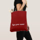 Are you looking for tote bag? Do you also prefer simple design and plain colour? Please see this simple plain red tote bag. You might like it. Font colour is white. It is also customisable. You can put your name on it. Please check the appearance after typing your name. If the appearance is pleasing to you, you can place your order now. If you need to resize and move your name after typing, please change in the design tool. You can also make other changes according to your preference in the design tool such as changing the bag colour, font colour, font style and adding images. Customise it. Personalise it.