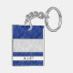 Add any name to this traditional nautical flag design with a modern trendy twist -- a maritime signal flag with faux watercolor styling! This one is the signal flag for the Letter J Juliet in royal blue and white, "blue and white stripes, "colour block stylish watercolor-look design. Looking for a cute little nautical gift they'll carry with them everywhere? A nautical signal flag keychain is THAT gift! Buy your initial and one for a friend! International Code of Signals Meaning for J Juliet signal flag: I am on fire and have dangerous cargo on board: keep well clear of me or I am leaking dangerous cargo. #Nautical #SignalFlag #GiftsUnder25