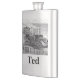 The product is a good size and came exactly as it was pictured. The lid is not attached to the flask, which could be dangerous on drunken nights... The print came out surprisingly well and looks very sharp. Would definitely recommend.