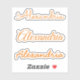 Decorate your laptop, water bottle, case, or other items with three custom stickers featuring your name in 3 different orange handwritten script fonts. Add your name in the sidebar. Select "matte white" in the sidebar to make the transparent background around your name white.