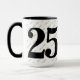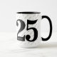 The bold black number 25 is printed on both sides over a diagonal background pattern created with your name. The number can represent your age or any other 25th event or goal you want to celebrate. This is a cool keepsake for reaching your milestone birthday.