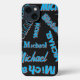 Your name pattern monogram blue red black colour. Personalizable custom name in blue with red colour shadow on a black colour background.