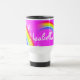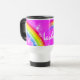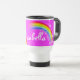 Bright and colourful rainbow "your name" kids travel mug. Perfect gift for a vibrant child to take to school or to sports and after school clubs. Mug reads: “Isabella” or personalise this mug with the name of your choice up to 8 letters. Mug designed exclusively by Sarah Trett.