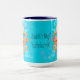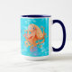 Cute pale tangerine octopus with bright blue eye and daisies for suckers, in a turquoise blue sea with colourful bubbles. Original digital painting. Personalised the mug the a name. Amanda’s mug tentacles off! Cute funny gift for everyone who loves the sea.