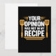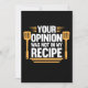 Your Opinion Not In Recipe Cook Chef Cooking Thank You Card