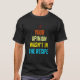 I give wanted to give this a 4 instead of a 5 because these Basic DARK T0shirts run unexpectedly SLIM or Narrow. Which is great if you do not have a potbelly, but I have a paunch. It isn't the shirt's fault that I've got a beer belly. The design and shirt itself is a quality cotton shirt. The color is more of a deep purple, but still a very pretty color. The Basic DARK T-shirts run a bit SLIMMER than the Basic Ts. The neck is a fraction narrower (or seems to be narrower) also. I'm a paunchy middle-aged woman and my neck is 12 inches (31cm) thick and the neckline fell about the same as in the photo of the man, and I had the desire to tug it a bit. So if you're a thick necked man or like loose shirts, be aware these are slimmer shirts. Once I get rid of my lockdown paunch it'll look great. The shirt washed well in cold water with no apparent bleeding. We don't have a dryer, so it hung dry. Did not shrink. Love the colors and the design. The design looks smaller on my shirt than it does on the model on-line. But still, it looks good on the shirt. The printing looks as it does on the model, just the size seems fractionally smaller. Washed garment in cold water, hung dry and design appeared unaffected.