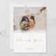 This modern wedding thank you card template features elegant gold effect script for "Thank You" and a beautiful gradient overlay. It offers space for your own romantic wedding photo and a clean, bold text area for your gratitude message and married couple names. The stylish design creates a refined keepsake to express sincere appreciation to guests, with options to update names, messages, and colours to match your celebration perfectly.