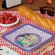 Your Photo 90 Random Number Pattern Purple/White Paper Plate