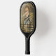 Personalise this pickleball paddle with your own custom photo in a retro gradated stripe shape design, with colour stripes on the other side.
