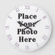 Place your photo here custom wall clock, your photo will appear behind the clock numbers for a truly professional look - pearlized purple pattern roman classic numerals