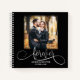 Guests can sign their best wishes, even add instant photos in this elegant spiral-bound guest book featuring the word forever in a beautiful script, your favourite photo with an inside border of any colour, we show black, and any background colour, we show black. Your name, date and any other info in chic lettering. CHOOSE HARD or SOFT cover and the STYLE PAGES you want inside.