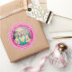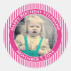 Your Photo Simple Stripes Pattern Fuchsia/White Classic Round Sticker